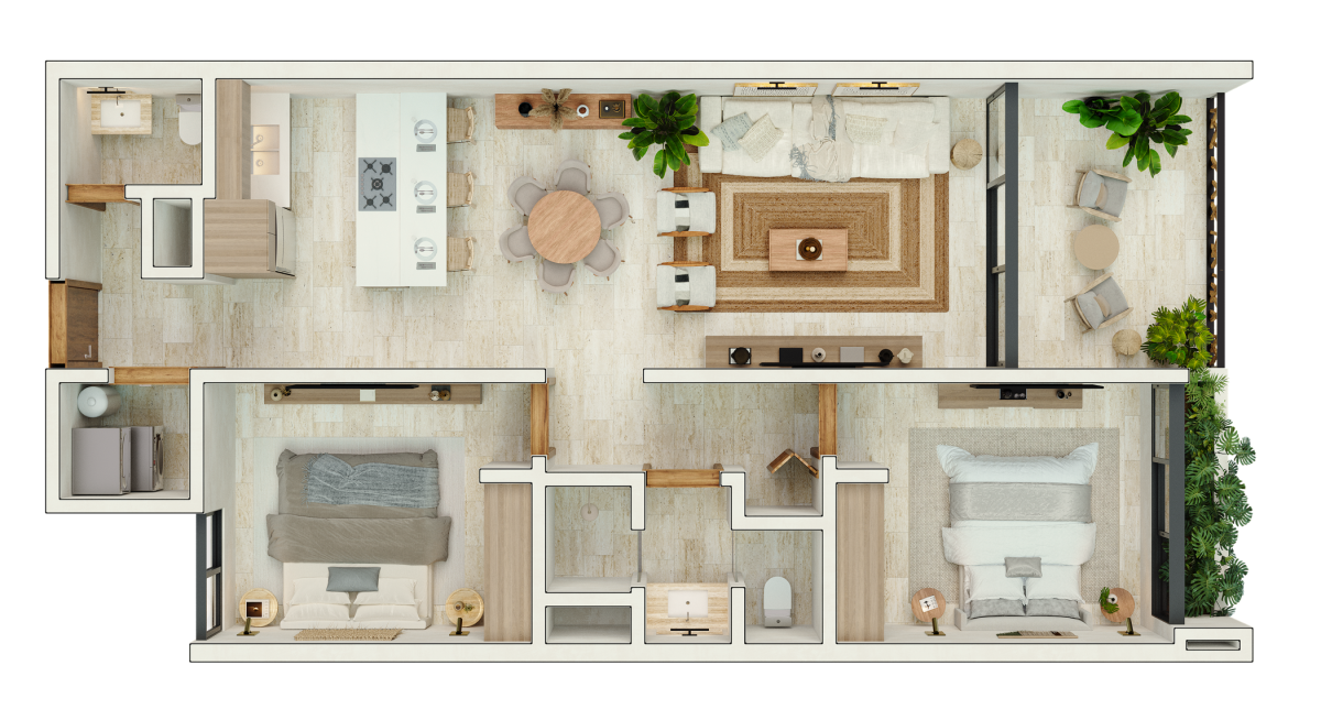 Cuenta con 82 departamentos distribuidos en dos torres con amenidades exclusivas.